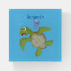This happy green sea turtle is blowing bubbles! Drawn in cute cartoon illustration style.