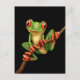This adorable design features a small green tree frog holding on to a thin branch. The tiny frog is looking forward with it's head tilted slightly to one side giving it a curious look. All four of the frog's feet are wrapped around a thin branch that moves from the bottom of the design up to the right side of the pattern. This unique design is a cute example of this wonderful little rain forest creature.