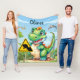 Cute Green Trex Dinosaur Personalized Fleece Blanket