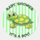 Cute Green Turtle Themed Baby Shower Stickers that say, I'ts a boy."