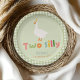 Add some silly farmyard fun to your toddler’s second birthday with these adorable “Two Silly” paper plates! Featuring a playful goose in a yellow party hat and a green gingham border, these gender-neutral plates are perfect for a sweet and whimsical celebration. Personalize with your child’s name for a fun custom touch at the party table!
