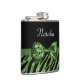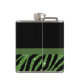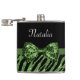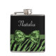Cute Green Zebra Print FAUX Glitz Bow With Name Hip Flask
