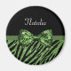 Cute Green Zebra Print FAUX Glitz Bow With Name Magnet