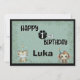 Gorgeous safari-themed greeting card featuring a cute tiger and monkey and lush botanical greenery around the edge. There is a place to personalize the age on an animal footprint and for your child's name. Inside, you can write a personal message along with the from and to info.