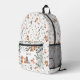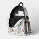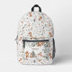 An adorable and cute hand painted watercolor country rustic greenery forest animals woodland backpack featuring cute bear, deer, raccoon, rabbit, hedgehog and a fox in neutral woodlands color, in orange, green, brown colors. with greenery leaves and tree branches.
