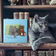Cute Grey Cat Teddy Bear Funny Blue Ceramic Tile