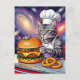 Cute Grey Tabby Cat Chef Making Cheeseburger Postcard