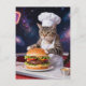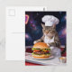 Cute Grey Tabby Cat Chef Making Cheeseburger Postcard