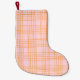 Cute Grid Lines Pattern Pastel Pink and Orange Small Christmas Stocking