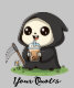 This adorable chibi illustration reimagines the iconic Grim Reaper in a playful and lighthearted way. The character features a cute cream-colored skull face with large sparkling eyes, a cheerful smile, and a tiny tooth peeking out from its mouth.