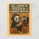 Celebrate Halloween with a playful twist in this unique postcard design featuring an adorable Grim Reaper enjoying a slice of pizza while watching horror movies. Surrounded by glowing jack-o’-lanterns, autumn leaves, and retro spooky details, this illustration perfectly blends creepy and cute. Ideal for sending Halloween greetings, adding to seasonal décor, or gifting to pizza lovers with a sense of humor. Whether you enjoy quirky artwork, gothic humor, or cozy spooky vibes, this postcard is a perfect way to share the fun side of Halloween.