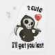 Funny and lovely Grim Reaper with romantic heart balloon says “You're cute, I'll get you last". Perfect for Valentines Day as well as for Halloween. For kids and for adults.