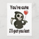 Funny and lovely Grim Reaper with romantic heart balloon says “You're cute, I'll get you last". Perfect for Valentines Day as well as for Halloween. For kids and for adults.