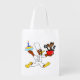 I own a lot of reusable grocery bags, but this one holds its box shape and simply stands up on its own even if there is nothing in it. Its stiffer than your regular reusable bag too, and the material is water resistant. I poured water on the exterior and it didn't penetrate inside to the other side. I'm buying a couple more. Wish I knew how durable these bags were or I would have purchased a few more with my initial order. I also like how it folds and buttons up when not in use, making it easy to put into a handbag or luggage. I haven't used this bag yet, as I purchased it for travel use, like when you're at the airport and need to small sturdy bag to place any airport purchases in, like food, souvenirs etc. I can tell you when you first see this bag, it looks very cheap, but after closer inspection of the material and the seams its a very sturdy reusable bag. I tested it out by putting some really heavy objects inside and I could not observe any stress to the bag at all. Another thing I like about it, is the fact the medium size that this is makes it easy to just carry it in your hand without the bottom of the bag scraping the ground, like most other bags do when you're short. That alone, deserves 5 stars. I just wish there were more colors to choose from! The PDX Airport Carpet printing looks just like the photo, and using this bag during travel might be a conversation piece when/if a native from Oregon happens to see it.