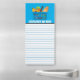 Wow. I just received my first order of these notepads and I am super impressed with the very high quality of the printing and materials, the very substantial overall size and weight and the fact that the magnet on the back is huge! Very nice product... Will order more styles right away! Perfect clarity and bright, true colors on my cartoon art.