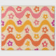 Cute Groovy flowers pattern on retro waves Wrapping Paper