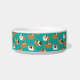 This is a heavy, durable bowl decorated with Tibbies of many colors, the perfect size for hungry/thirsty Tibs. The design is interesting and printing clear.