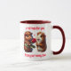 Add a touch of cuteness to your favorite drink with this two-tone mug, which features an AI-generated design of a pair of Abyssinian guinea pigs exchanging a red rose. Customize messaging as desired. Reverse shows identical design.