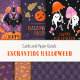 Double-sided crafting paper, smaller size of the pattern on the back. Purple Halloween-themed pattern with cute illustrated bats, pumpkins, black candles, fall leaves, and stars. Have fun and enjoy the process of creating! Original artwork by Marketa Stengl.