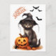 Cute Halloween Black Cat, Pumpkin and Spider Postcard