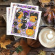 Celebrate spooky season with this cute and playful Halloween pattern featuring black cats, smiling jack-o’-lantern pumpkins, candy corn, lollipops, bats, ghosts, and witchy details. Set on a soft purple background, this whimsical illustration blends festive charm with a touch of spooky fun. Perfect for Halloween this design is ideal for cat lovers and anyone who enjoys a cheerful and colorful take on Halloween.