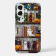 Cozy and charming, this phone case features a Halloween bookshelf filled with books, cute ghosts, and glowing pumpkins in a stained-glass–inspired design.