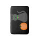 This awesome bath mat features a digital art image of a cute gray cat with black ears, nose and mouth and bright green eyes. The cat is wearing a green collar with a bright glowing orange gemstone charm set in gold. The cat is sitting next to an orange pumpkin.