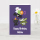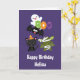 Birthday greeting card with a black flying bat, a green mummy bat wearing white bandages and a cute black cat with an orange witches hat. Boo written in fun colorful letters with a happy ghost floating behind.