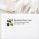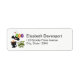 Address labels with a black flying bat, a green mummy bat wearing white bandages and a cute black cat with an orange witches hat. Boo written in fun colorful letters with a happy ghost floating behind.