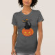 Cute Halloween cat t-shirt with cute black cat and pumpkin Jack-o-lantern vector graphics. Choose any other t-shirt color or style!