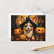 Cute Halloween Corgi In Forest With Pumpkins Holiday Postcard
