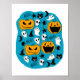 Cute drawing of jack o' lanterns, black cat, ghosts, skulls in doodle style. Great halloween poster!