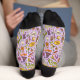 This fun Halloween socks are bright and colorful. The small print is crisp and shows the fun details. The softness of the socks feels nice on my feet and ankles. .