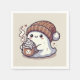 Cute Halloween Ghost in Fall Beanie & Hot Cocoa Napkins