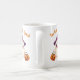 This fun Halloween mug features an adorable cartoon ghost wearing a tiny purple witch hat and holding a pumpkin candy bucket. Above the ghost is the playful Halloween message “Too Cute to Spook.”