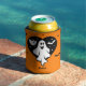 Cute Halloween Ghost With Heart And Bat Can Cooler - easy to customize with your own text / name