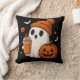 Cute Halloween Ghost with Pumpkin and Drink Throw Pillow