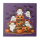 Cute Halloween Ghosts In Coquette Bows & Pumpkins Ceramic Tile