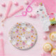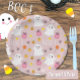 Some adorable pink paper plates with a pattern made of ghosts , candy corns , orange lollipops , jack-o-lanterns , pink pumpkins , black leaves and berries . They're perfect for an October baby showing , a child's birthday or a fun kids Halloween party .