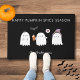 Happy Pumpkin Spice Season Doormat featuring a trio of friendly ghosts.