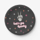 These Halloween plates feature the text Let's get spooky in a trendy retro typography and a skeleton hand giving a peace sign and starbursts in pink orange and white. Additional party favors, accessories and invitations with this same design theme are available in our zazzle store, for additional customization send me a message