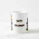 Cute Halloween haunted house and little witch mug, featuring a haunted house with cute ghosts, bats, black cats and a little witch.
