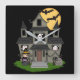 Cute Halloween haunted house and little witch Squa Square Wall Clock