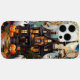 Cozy and spooky, this phone case features a charming haunted house surrounded by glowing pumpkins and cute ghosts in a stained-glass–inspired design.