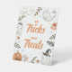 Adorable watercolor Halloween birthday sign featuring the phrase “No Tricks, Just Treats.” Perfect for kids’ parties, festive decor, and candy tables.