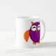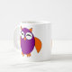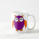 This stylish mug features a cute owl with its eyes shut as if it is sleeping and cute claws. Its body is purple and its wings, ears and claws and beak are orange. This cute owl is so adorable adults will love it just as much as kids.