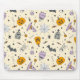 This cute Halloween pattern features a delightful mix of spooky and sweet illustrations scattered across a light beige background. The design includes playful Halloween elements such as a purple witch's hat adorned with stars, pumpkin-shaped candy, whimsical skulls and bones, and lollipops. Additional spooky touches include spiders hanging from webs, bats, tombstones, and potion bottles labeled "Magic." Small stars and polka dots fill the gaps, giving the design a cheerful and fun vibe. The soft color palette, including purples, oranges, and yellows, adds to the charm, making this pattern perfect for a lighthearted Halloween celebration.