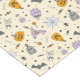 This cute Halloween pattern features a delightful mix of spooky and sweet illustrations scattered across a light beige background. The design includes playful Halloween elements such as a purple witch's hat adorned with stars, pumpkin-shaped candy, whimsical skulls and bones, and lollipops. Additional spooky touches include spiders hanging from webs, bats, tombstones, and potion bottles labeled "Magic." Small stars and polka dots fill the gaps, giving the design a cheerful and fun vibe. The soft color palette, including purples, oranges, and yellows, adds to the charm, making this pattern perfect for a lighthearted Halloween celebration.