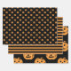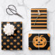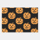 Cute Pumpkins Mixed Halloween Wrapping Paper Sheets include assorted designs with matching colors for your spook party. Two sheets have black background with pattern of orange jack o lanterns and one sheet has black and orange stripes.