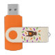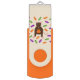 This awesome USB drive features a graphic image of a cute little brown rat with pink ears tail and feet. The rat is holding an orange pumpkin between its paws. There is a collection of green, purple and orange candy sweets surrounding the little rat. This design is perfect for any rat lover or owner this Halloween.